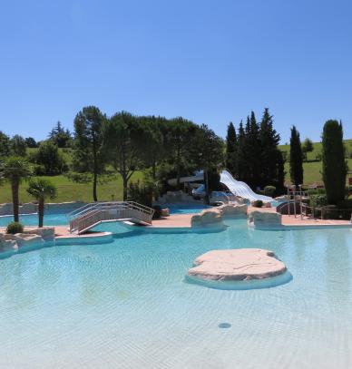 Bassins chauffés, espaces aquatiques, snack, toboggans, lacs, aires de jeux, des activités pour l’été et toute l’année.